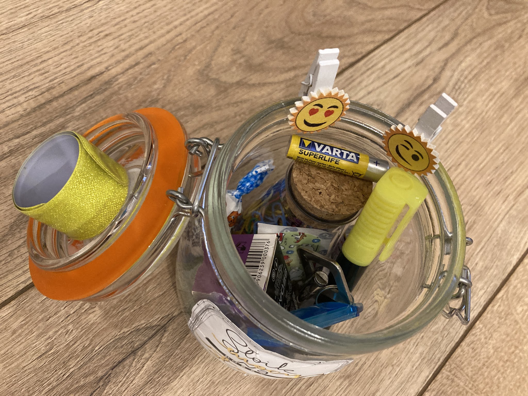 W słoikach uczniów, znajdują się gadżety, które metaforycznie i z przymrużeniem oka mają